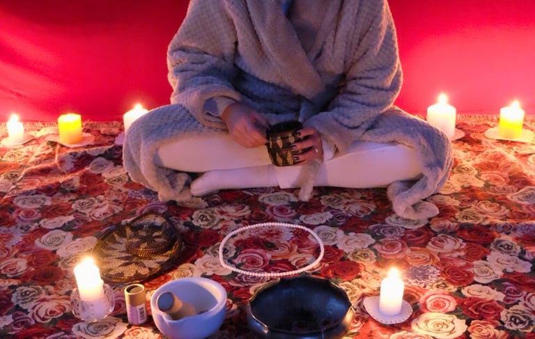 Meditation guidance and ancestral practices for grounded reflection and self-alignment.